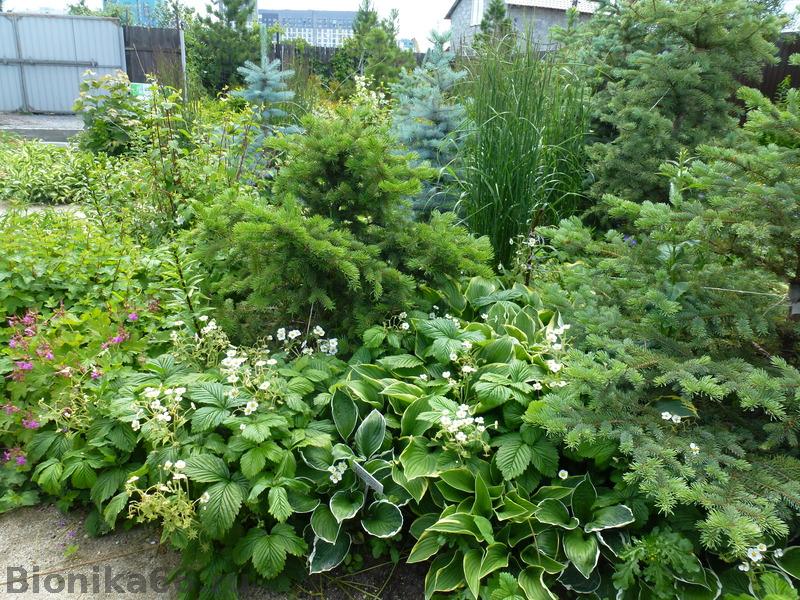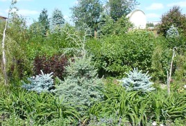 Свой личный садовый участок я превратила в ландшафтный питомник. Здесь растут крупномерные формованные голубые ели, клёны, берёзы, ивы, декоративные кустарники и многолетние цветы. Летом мой сад превращается в непрерывно цветущий зелёный оазис.